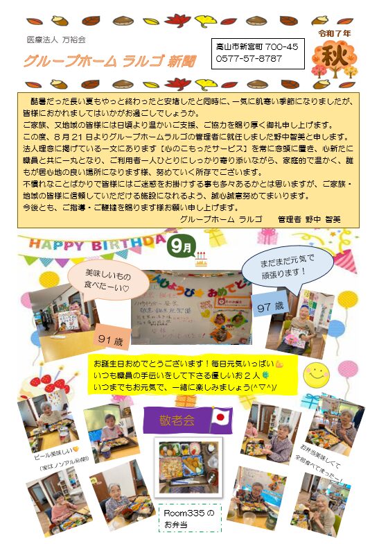 ホーム » 🍂グループホームラルゴ新聞秋号🍂