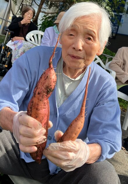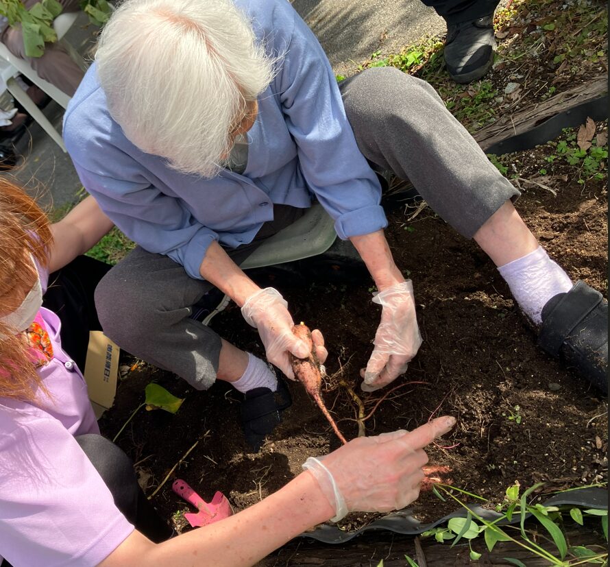 ラルゴファームで育てた「さつまいも🍠」を利用者様とスタッフの共同作業で堀りました(^^♪掘った後は芋づるをキレイにする作業を頑張りました♪次回は「焼き芋パーティー」です(#^^#)