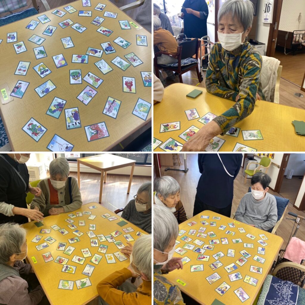 午後からは昔懐かしいカルタ取りをしました。最高23枚の札を取られた利用者様もみえ白熱した戦いでした!🔥