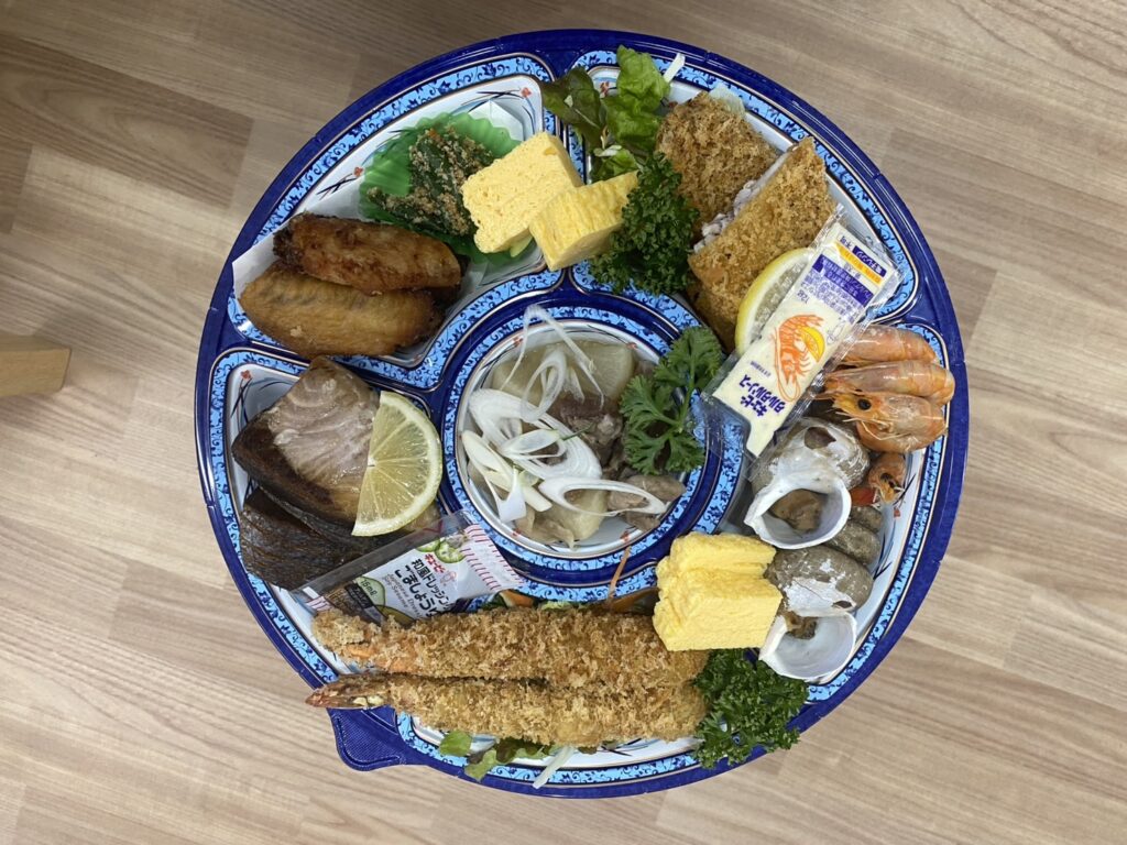 「まるい家」さんのオードブルと鉄火丼で新年会を開催しました!