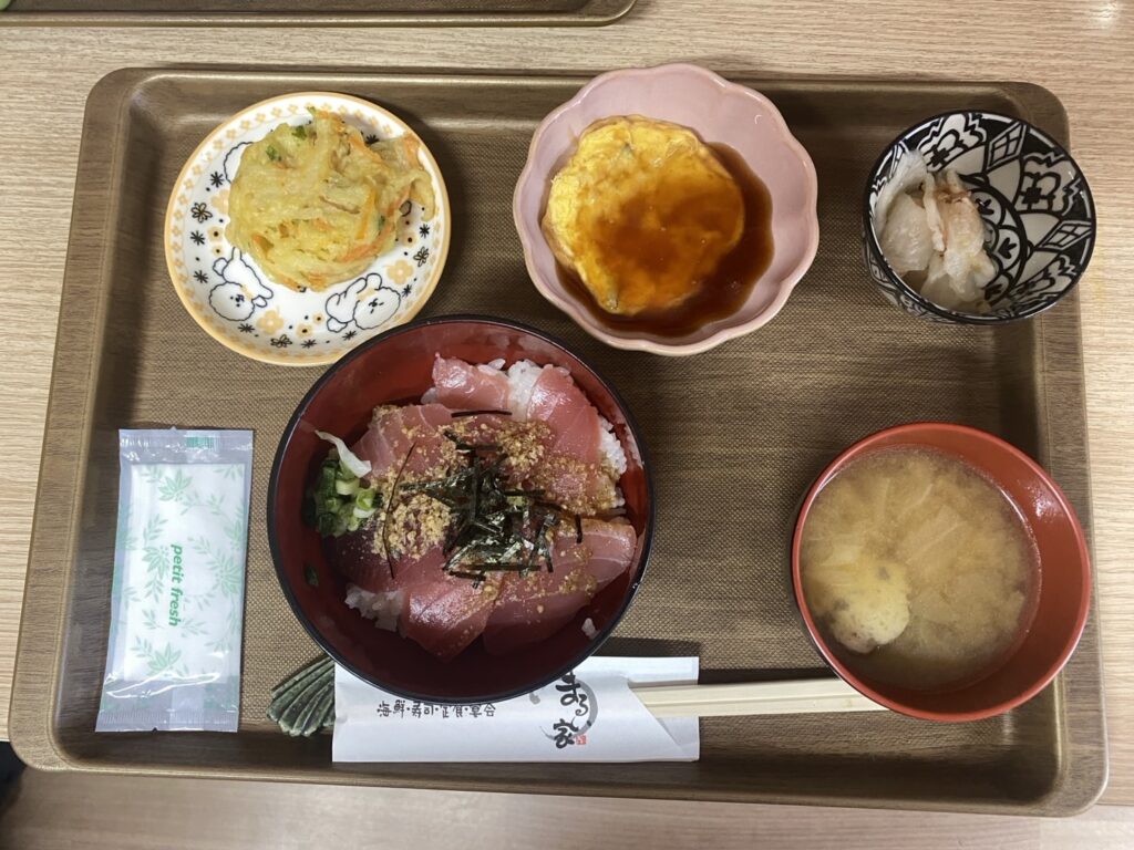 職員も一緒に乾杯して楽しい食事会となりました!😋日頃、少食な利用者様も鉄火丼など珍しいメニューで沢山食べて下さいました‼🍣
