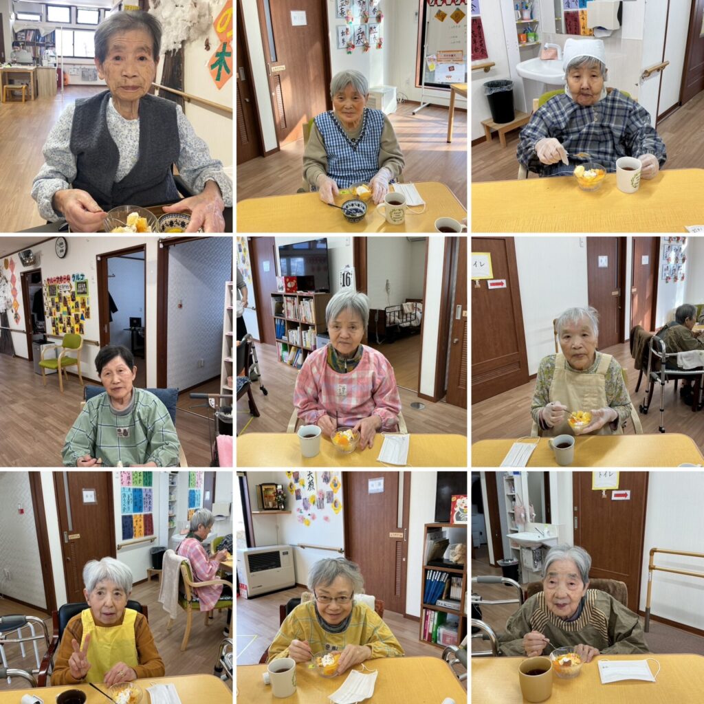おやつは、おのおのスポンジに好きにトッピングをしたケーキを召し上がって頂きました‼🧁甘い物は別腹とは、よく言ったものです!😆