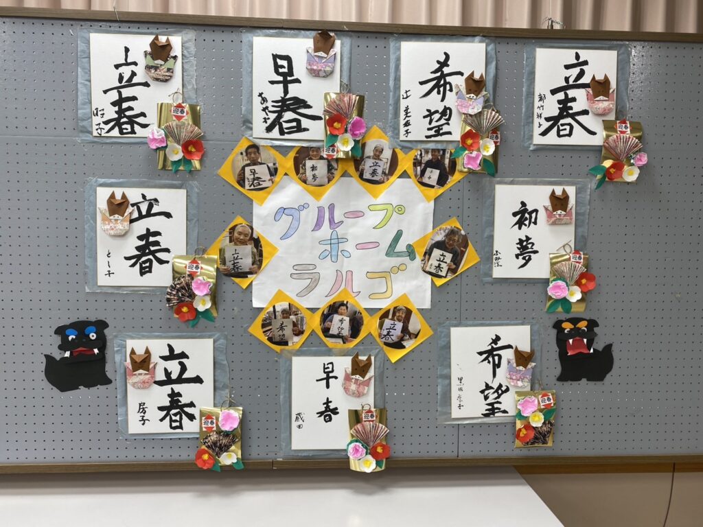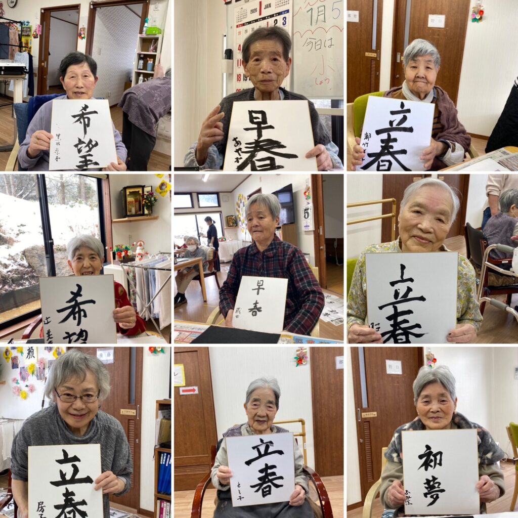 新年恒例書初め大会は各利用者様が選んだお題を書かれました!集中され、どの方も素晴らしい筆さばきです!✨