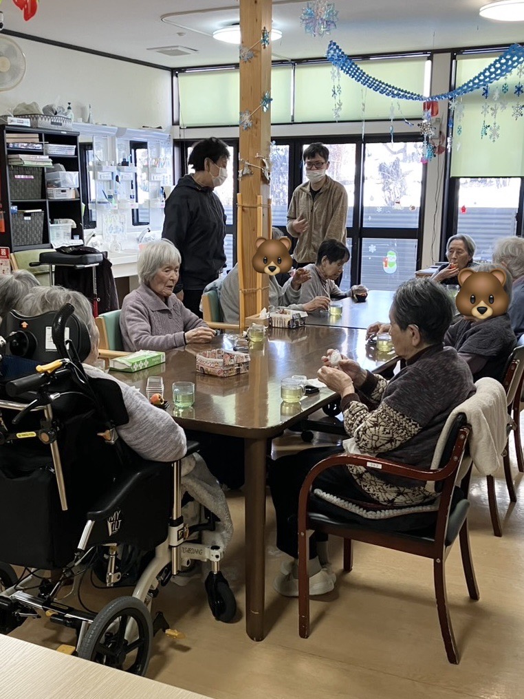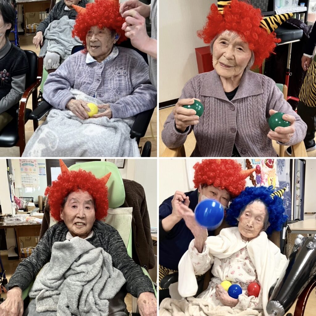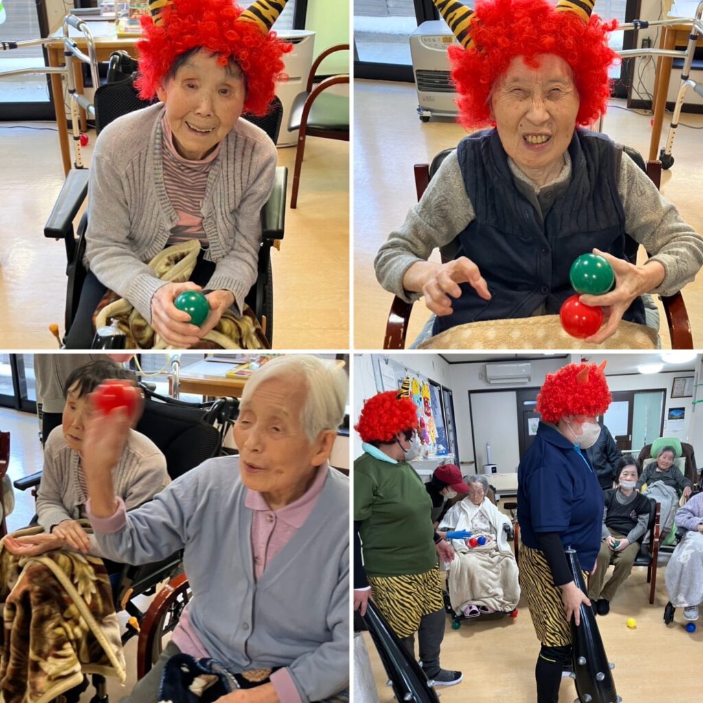 全国的に寒波がきており高山も例外ではなく、節分・立春を迎えても周りの景色や気温はまだまだ冬真っただ中です!⛄それでも季節毎の行事は大事にしている為、❛節分会❜をしました!👹利用者様が過ごすお部屋で豆が撒けないのでカラーボールを豆に見立てて投げました!🤹♀️