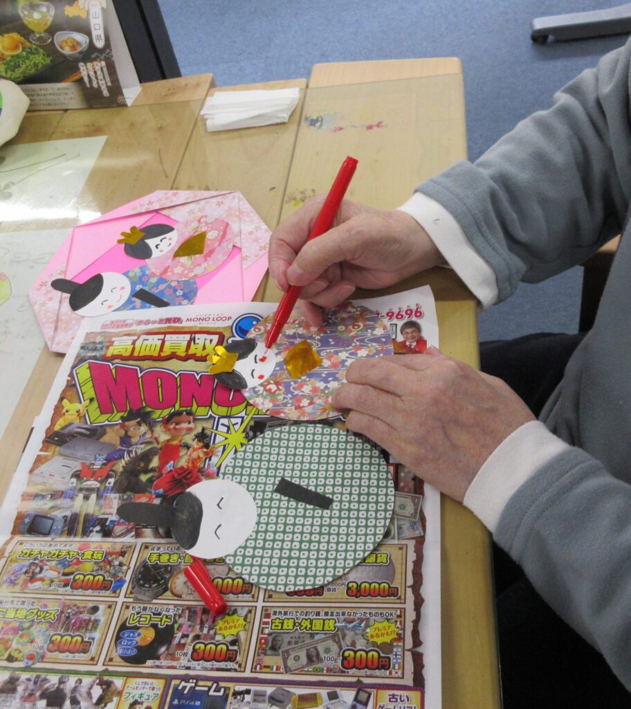 今回の作品はハサミで切って貼ったり、和紙でおひな様を折ったりと、少し難しそうでしたが、一生懸命に取り組まれました。