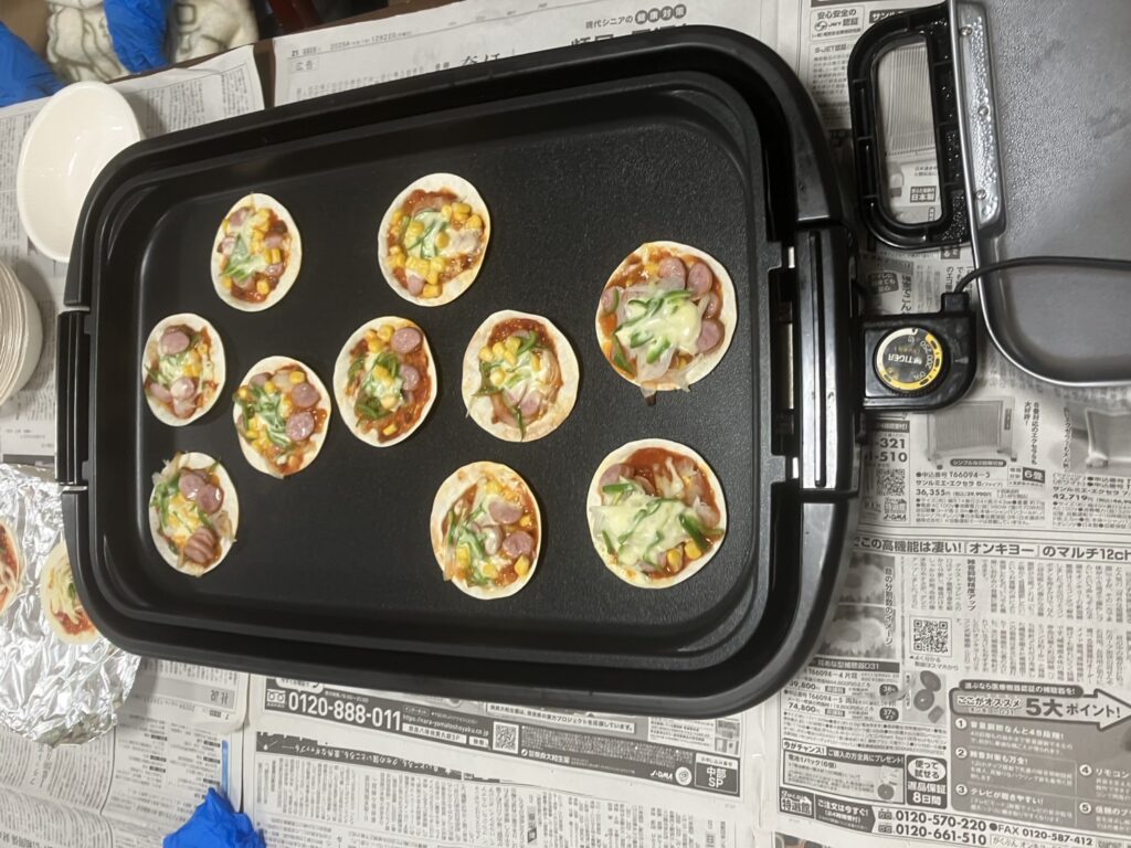 トッピングが出来たらホットプレートで焼くだけです!🔥
